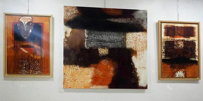 وعن المعرض قال التشكيلي غسان عكل الذي شارك بأربعة أعمال “جمعت التصوير والغرافيك من خلال اسلوبي الحروفي وعبرت فيها عن جدران مدينتي وجمالها لتعكس ما جمعت بداخلي من حنين وشوق لذاك الطفل الذي كان يوما هناك يلون الجدران ويعتقها بعفوية الطفولة المشبعة باللعب واللهو”.