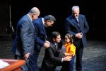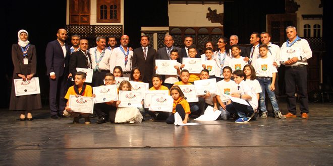 على محبة الأرض ومجد الوطن اجتمع أطفال منظمة طلائع البعث الموهوبون ضمن مهرجان اغنية الطفل السوري الثاني لتصدح حناجرهم بأغنية الحياة ولحن السلام ويعبروا عن انتمائهم لسورية متنافسين بالصوت والكلمة والإحساس وكان الفائزون منهم على موعد مع التكريم ضمن حفل فني أقيم اليوم على مسرح الأوبرا في دار الأسد للثقافة والفنون.