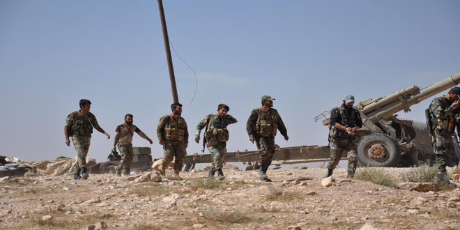 نفذت وحدات الجيش العربي السوري العاملة في دير الزور بإسناد سلاح الجو عمليات مكثفة ضد تنظيم “داعش” الإرهابي أحكمت خلالها السيطرة على قرية الحسينية شمال غرب المدينة وعلى نقاط حاكمة في محور عملياتها العسكرية بمنطقة الميادين.