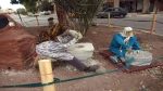 الشيحاوي الذي استخدم في أعماله المواد التالفة والمدورة قال في حديث لنشرة “سانا ” “سياحة ومجتمع” : أنه ” أراد أن يخرج موهبته من هذا المكان لينشر الفن في كل بقعة بمدينته ” لافتا إلى أنه استفاد من بعض المواد التالفة الموجودة في بيئته وحولها الى مجسمات تجسد جدات ريفيات بلباس تراثي يقمن بعمل الخبز على التنور وطحن الحبوب بطاحونة حجرية ومجسمات لبعض الآلات الموسيقية التراثية المعروفة بمنطقة سلمية.