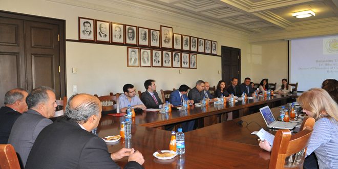 بحث وفد علمي من جامعة سنتياغو كومبستيلا الإسبانية اليوم مع مسؤولين في جامعة دمشق إمكانيات التعاون في مجال البحث العلمي وبناء القدرات والعمل على مشاريع بحثية في مجالات الطاقة المتجددة والبيئة والتنمية المستدامة بما يخدم متطلبات مرحلة إعادة الإعمار.