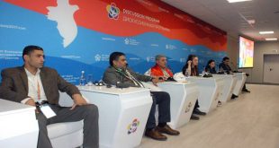 عبر المشاركون في جلسة للتضامن مع سورية في إطار فعاليات اليوم الخامس لمهرجان الشباب العالمي التاسع عشر للشباب والطلبة المنعقد في مدينة سوتشي الروسية عن دعمهم للشعب السوري في حربه ضد الإرهاب.