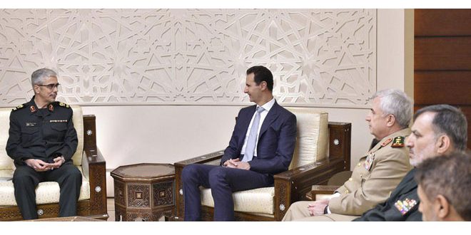 وتناول اللقاء مع اللواء باقري والوفد المرافق له المراحل المتقدمة التي وصلت إليها العلاقات الأخوية بين سورية وإيران في المجالات كافة وعلى رأسها التعاون العسكري الذي شهد تطورا نوعيا خلال الحرب التي تخوضها سورية وحلفاؤها وفي مقدمتهم إيران ضد الإرهاب.