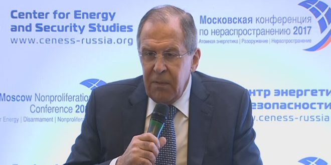وقال لافروف في كلمة له خلال المؤتمر الدولي لحظر الانتشار النووي بموسكو إن “النظام الذي تم وضعه عبر معاهدة منع انتشار الأسلحة النووية ووضع الأساس لعدد من الاتفاقيات يعيش اليوم أوقاتا عصيبة ويخضع لاختبار جدي” مبينا أن بلاده “لن تنضم إلى أي اتفاقيات جديدة” لمنع الأسلحة النووية غير معاهدة منع انتشار الأسلحة النووية.