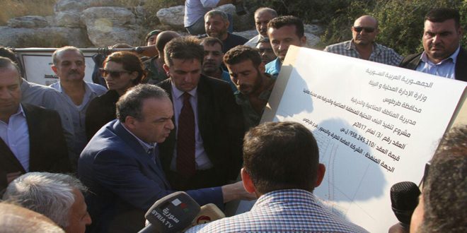 بتوجيه من السيد الرئيس بشار الأسد قام رئيس مجلس الوزراء المهندس عماد خميس بزيارة عمل الى محافظة طرطوس لتتبع نسب تنفيذ المشاريع الخدمية والتنموية التي أطلقت سابقا في المحافظة وذلك ضمن جولته التي بدأها من محافظة حماة وشملت أيضا محافظة اللاذقية.