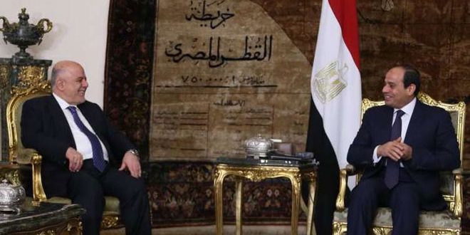 وجاء في بيان للمتحدث باسم رئاسة الجمهورية المصرية السفير علاء يوسف تلقى مراسل سانا بالقاهرة نسخة منه “إن الرئيس السيسي نوه خلال استقباله اليوم بقصر الاتحادية رئيس الوزراء العراقي حيدر العبادي بالانتصارات المتتالية التي حققتها القوات العراقية في حربها ضد تنظيم “داعش” ونجاحها في تقويض التنظيم الإرهابي.
