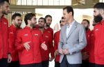 وأكد الرئيس الأسد أن تحسن مستوى المنتخب الوطني في ظل الظروف الصعبة التي تمر بها سورية يعتبر بحد ذاته إنجازاً ويجب البناء على هذا الإنجاز ومواصلة تحسين المستوى ورفع الكفاءة استعداداً للبطولات المقبلة مضيفاً.. إن هذا الإنجاز وغيره من الإنجازات التي يحققها السوريون في مجالات عدة لم تكن لتتحقق لولا النجاحات والانتصارات التي يحققها الجيش والقوات المسلحة ضد الإرهابيين ولولا صمود الشعب السوري في وجه أعتى حرب تعرضت لها سورية في التاريخ الحديث.