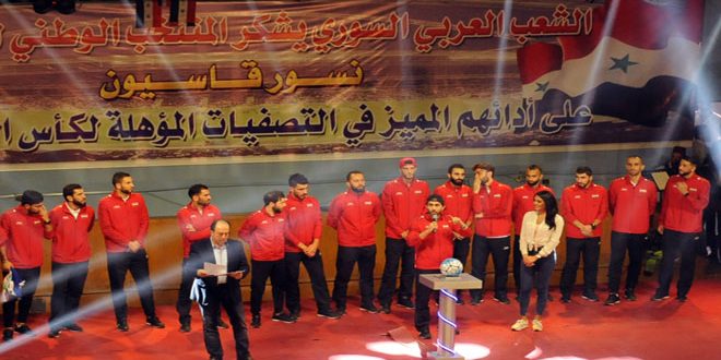 وغصت الصالة الرئيسية في الفيحاء بالجمهور كما احتشد الآلاف خارجها لاستقبال لاعبي منتخب سورية معبرين عن فرحتهم الغامرة بلقاء هؤلاء الأبطال الذين تفوقوا على ظروف إعداد المنتخب غير المثالية وتمكنوا من بلوغ الملحق الآسيوي وكانوا قريبين من تحقيق حلم ملايين السوريين ببلوغ منتخبهم نهائيات كأس العالم لأول مرة في تاريخه.