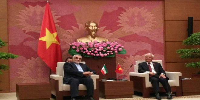 وكان بروجردي التقى مساء أمس رئيس لجنة الدفاع والأمن في البرلمان الفيتنامي واتشانغ ويت حيث تم التأكيد على وجهات النظر والمواقف المشتركة للبلدين تجاه القضايا والتطورات الدولية والإقليمية والتي تشكل أرضية مناسبة لارتقاء مستوى العلاقات الودية على جميع الصعد.