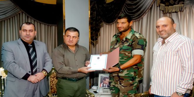 كرم محافظ اللاذقية إبراهيم خضر السالم اليوم السباح عزام علي ضاهر تقديرا لإنجازاته في السباحة الطويلة والتي كان آخرها السباحة من اللاذقية إلى طرطوس بزمن قدره تسع وعشرون ساعة متواصلة.