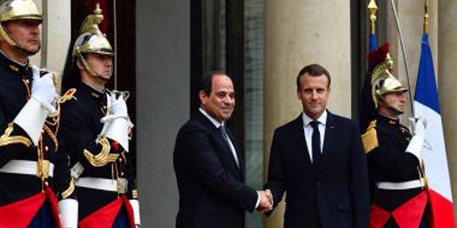 أكد الرئيسان المصري عبد الفتاح السيسي والفرنسي إيمانويل ماكرون ضرورة مواصلة مكافحة الارهاب في سورية وإعادة الأمن والاستقرار إليها.