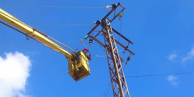 أنهت الورشات الفنية التابعة للشركة العامة لكهرباء حماة اليوم أعمال تأمين التغذية الكهربائية لعدد من المنشآت الصناعية والمعامل على طريق حماة-حمص شملت مد خط توتر متوسط باستطاعة 20 ك.ف من محطة حماة رقم 2 باتجاه المنشآت والمعامل وبطول 5ر2كم مع نصب 24 برجا.