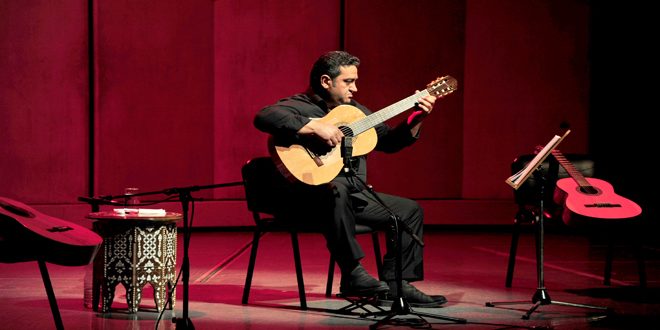 رحلة عبر مدارس الغيتار العالمية بين الموسيقا الشرقية والكلاسيكية والفلامينكو والتانغو واللاتينية التقليدية كانت اليوم بتوقيع عازف الغيتار السوري طارق صالحية في ثالث أمسيات مهرجان العزف المنفرد بنسخته الثالثة بدار الأسد للثقافة والفنون.