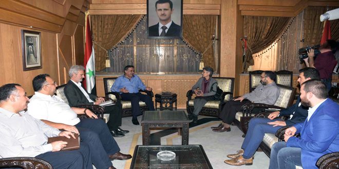 بحث محافظ حلب حسين دياب اليوم مع ماريان غاسر رئيسة بعثة اللجنة الدولية للصليب الأحمر في سورية والوفد المرافق لها سبل توسيع مجالات التعاون والتنسيق في العمل الإغاثي والانساني بهدف توفير الخدمات ومساعدة العائلات المتضررة والعائدة لمناطقها التي أعاد إليها الجيش الأمن والاستقرار.