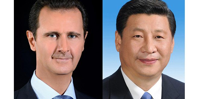 بعث السيد الرئيس بشار الأسد اليوم برقية تهنئة إلى رئيس جمهورية الصين الشعبية شي جين بينغ بمناسبة إعادة انتخابه أمينا عاما للجنة المركزية للحزب الشيوعي الصيني لولاية ثانية متمنيا له التوفيق والنجاح وللشعب الصيني الصديق المزيد من التقدم والازدهار.