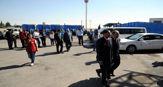 تسلمت منظمة الهلال الأحمر العربي السوري اليوم عشرة جرارات ومقطورات متعددة الأغراض وحافلتي نقل موظفين وسيارتين للاستخدام الإداري مقدمة كمنحة من مفوضية الأمم المتحدة لشؤون اللاجئين وذلك بهدف دعم مهام المنظمة الإنسانية والإغاثية.