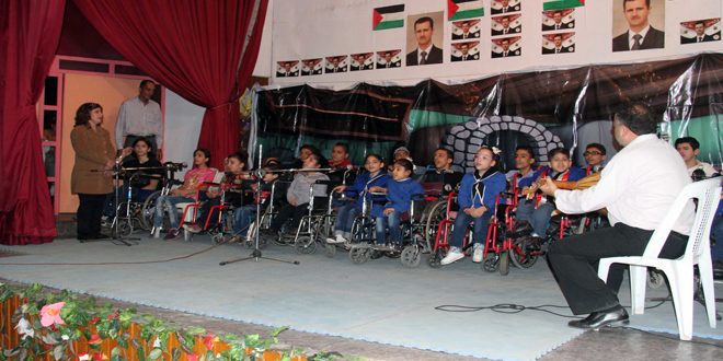 شارك أكثر من أربعين طفلا من ذوي الإعاقة في فقرات فنية ومسرحية ضمن حفل نظمه اليوم معهد التأهيل المهني للمعوقين في دمشق بالتنسيق مع مدرسة الأمل ومعهد الصم والبكم.