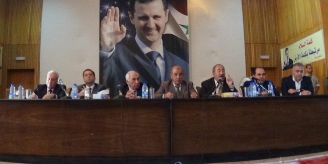 حضر اللقاء رئيس مجلس المحافظة هاني الحمدان و بعض أعضاء مجلس الشعب عن محافظة درعا و أعضاء قيادة فرع حزب البعث وعضو المكتب التنفيذي مسؤول قطاع التربية ورؤساء المنظمات الشعبية والنقابات المهنية ومدير التربية وفعاليات رسمية وحزبية ودينية.
