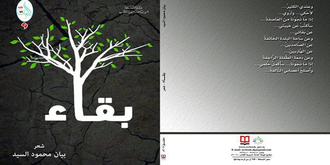 “بقاء” مجموعة شعرية صادرة عن الهيئة العامة السورية للكتاب للشاعر بيان محمود السيد تتضمن مواضيع مختلفة يغلب عليها الحس الوطني الذي ظهرت فيه الشهادة كأهم مكونات النصوص في بنيات شعرية مختلفة من نص لآخر إضافة إلى مواضيع أخرى.