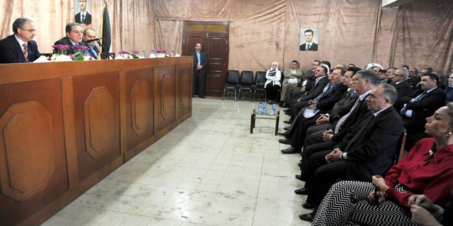وكان وزير العدل أجرى سلسلة من اللقاءات المماثلة مع قضاة السويداء واللاذقية وطرطوس وحلب وحمص وذلك في إطار اللقاءات الدورية مع القضاة في المحافظات للوقوف على سير العمل والاطلاع على المعوقات لتذليلها.
