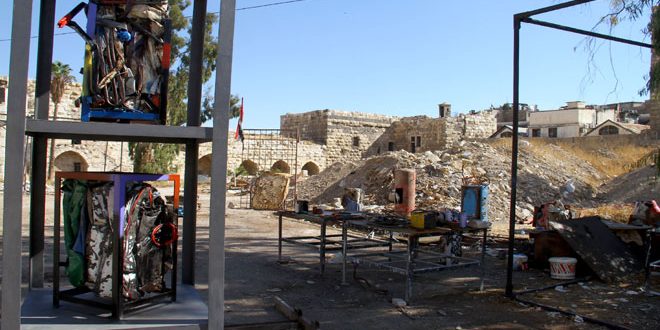 بطريقة فنية مبتكرة تكشف حجم الدمار والخراب الذي خلفته الحرب الإرهابية على سورية أبدع الفنان العالمي مصطفى علي منحوتة فريدة في شكلها ومكوناتها حيث استخدم فيها المخلفات الناجمة عن قصف الإرهابيين منازل السوريين ليكون عمله الجديد “بقايا الحرب” اسما على مسمى وشاهدا على قسوة وفظاعة الحرب.