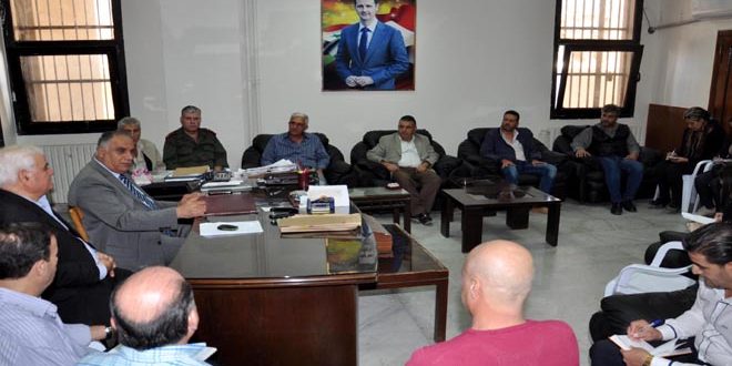 بحث محافظ حمص طلال البرازي مع المعنيين بتنفيذ مشروع تأهيل وصيانة قصر العدل في حي الوعر بالمدينة اليوم آلية استكمال ونسب تنفيذ المشروع ضمن المخصصات المالية الموضوعة.
