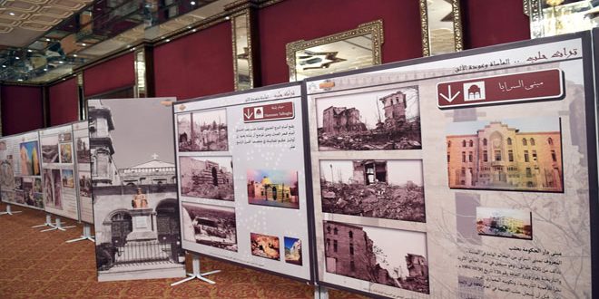 وضم المعرض صورا ولوحات توثيقية لـ18 موقعا تاريخيا وأثريا في مدينة حلب وما لحق بها من دمار بسبب الإرهاب والجهود المبذولة لإعادة ترميمها حيث بين فراس دادوخ نائب مدير شؤون المتاحف في المديرية العامة للآثار والمتاحف ورئيس دائرة التطوير المتحفي أن هذا المعرض يبرز حجم الدمار الذي ألحقه الإرهاب بمعظم مباني المدينة القديمة في حلب ويسلط الضوء على خطة المديرية العامة لإعادة تأهيلها وترميمها بعد توصيف ما لحق بها من أضرار بهدف إعادة توظيفها من جديد.