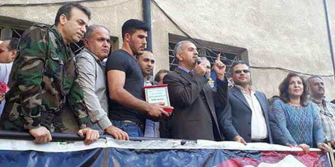 وأكد رئيس مكتب الشباب والرياضة في فرع حمص لحزب البعث العربي الاشتراكي شحادة مطر أهمية الانجاز الرياضي والوطني الذي حققه منتخب نسور قاسيون مشيرا إلى أن انجازات الرياضيين السوريين تتوازى مع الانتصارات التي يحققها أبطال الجيش العربي السوري على الإرهاب.