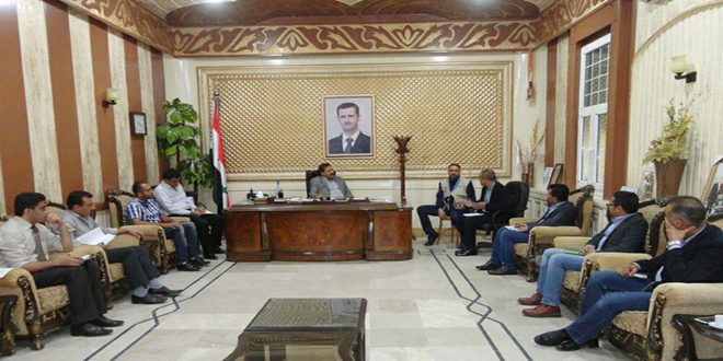 بحث محافظ الحسكة جايز الموسى مع وفد من برنامج الاغذية العالمي برئاسة احمد زكريا اليوم خطة عمل مكتب البرنامج في المحافظة لعام 2018 وآليات الوصول إلى الفئات الأشد احتياجا.