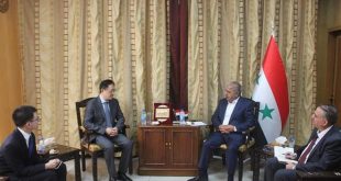 دمشق-سانا بحث وزير الكهرباء المهندس غسان الزامل مع سفير جمهورية الصين الشعبية بدمشق شي هونغوي،