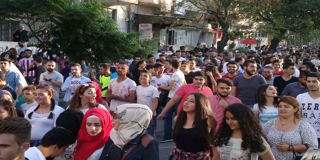 الراعي لم يكن الوحيد الذي شارك في مهرجان عيش سورية بنسخته الثانية الذي تضمن برنامجه لهذا العام حفلا جماهيريا كبيرا جاء كختام لماراثون قطع خلاله آلاف الشباب واليافعين مسافة اربعة كيلومترات انطلاقا من دوار العلبي على الكورنيش الغربي وصولا إلى مبنى الاورانج مول حيث قدم المشاركون من مختلف المحافظات لوحة فنية متميزة سواء بقمصانهم الموحدة أو بالأغنيات والهتافات التي صدحت بها حناجرهم محيين سورية وشعبها.