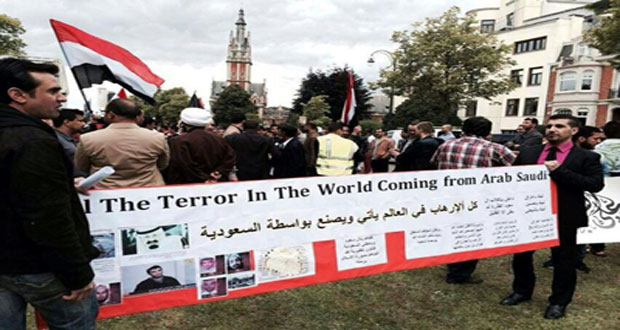تظاهر المئات من المغتربين السوريين والعراقيين والمواطنين البلجيكيين أمام سفارة آل سعود في العاصمة البلجيكية بروكسل منددين بسياسات السعودية في دعمها للتنظيمات الإرهابية والعمل على نشر الفوضى والدمار في العراق وسورية.