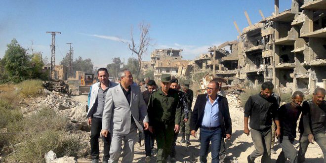 اطلع محافظ دير الزور محمد ابراهيم سمره على المراحل التي نفذتها ورشات الجهات الخدمية في شارع بور سعيد وحي العرفي اللذين استعادت وحدات الجيش العربي السوري السيطرة عليهما أمس الأول.