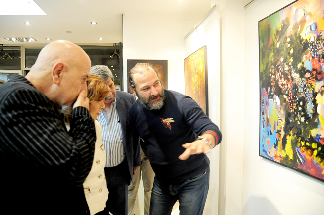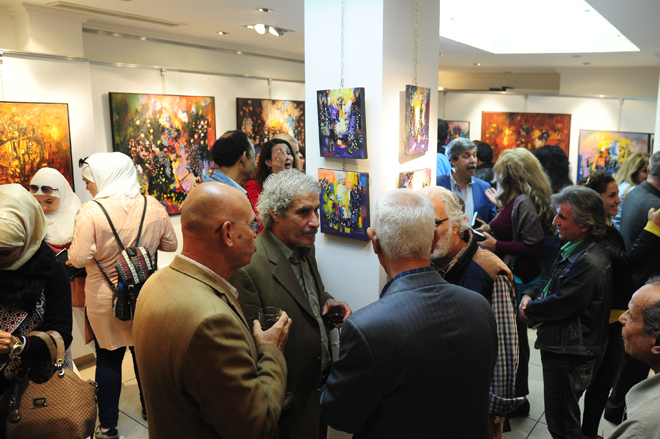 أعمال جديدة مليئة بالفرح والعفوية وإرادة الحياة قدمها التشكيلي موفق مخول في معرضه بعنوان “مخوليات” في صالة ألف نون للفنون حيث طغت الألوان المضيئة الموزعة بهارموني متوازن على سواد الخلفية على كامل سطح اللوحة.