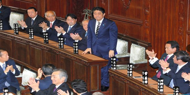 واستعاد الائتلاف الحاكم بقيادة الحزب الديمقراطي الحر أغلبية الثلثين في مجلس النواب في الانتخابات التي جرت يوم 22 تشرين الأول الماضي ما يعطي دفعة لمسعى آبي لمراجعة الدستور الياباني السلمي الذي وضع بعد الحرب.