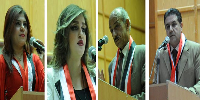 أما الشاعرة أمل مناور فألقت قصيدة بعنوان “هكذا غنى الفرات” اختارت لها مجزوء البحر الوافر الذي يتلاءم مع العاطفة الإنسانية والوجدانية ومع المواضيع الوطنية والفراق معتبرة أن بعدها عن دير الزور جرح يجب أن يلتئم بلم الشمل ودحر الإرهاب فقالت.. “تجلى في السما البدر..وغنى هكذا النهر فرات المجد والتاريخ..للدنيا هو الصدر حضارات وأجيال..على شطيه قد مروا”.