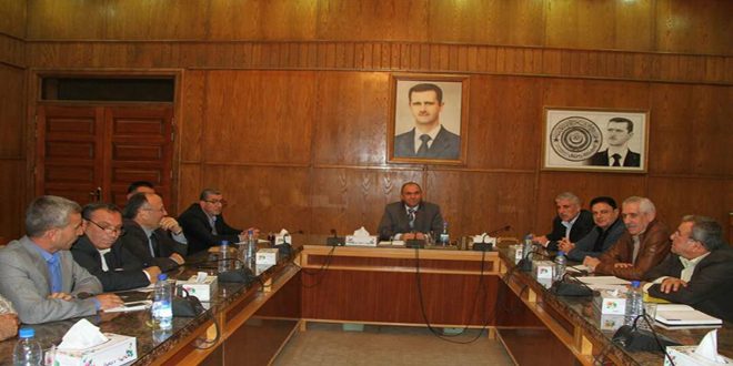 بحث نائب رئيس المكتب التنفيذي لمجلس محافظة حماة المهندس خالد الخضر خلال اجتماعه مع مديري المؤسسات والشركات الخدمية في المحافظة سبل تسريع وتائر العمل لإعادة تأهيل المرافق الخدمية والبنى التحتية في بلدات ريف حماة الشمالي التي أعاد إليها الجيش العربي السوري الأمن والاستقرار لتشجيع عودة باقي الأهالي إلى منازلهم ودعم استقرارهم فيها.