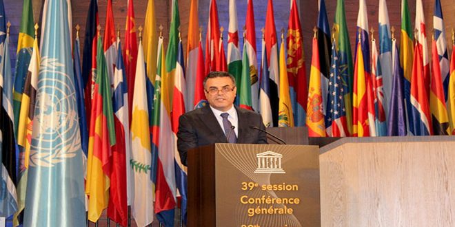 وأشار الوزير الوز في كلمته خلال أعمال الدورة التاسعة والثلاثين للمؤتمر العام لليونسكو المنعقدة في مقر المنظمة بباريس إلى عودة نصف مليون طالب وطالبة سوريين إلى مقاعدهم ومدارسهم في العام الدراسي الحالي وذلك بالتوازي مع الانتصارات المتواصلة التي يحققها الجيش العربي السوري على التنظيمات الإرهابية مؤكدا أن سورية تولي قطاعي التربية والتعليم العالي الاهتمام اللازم وتكرس الإمكانات المتاحة لمواصلة العملية التربوية والتعليمية وتطويرهما.