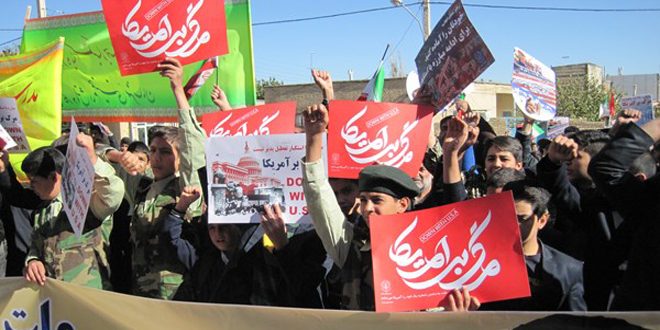 أكد المشاركون في فعاليات “اليوم الوطني لمقارعة الاستكبار العالمي” تضامنهم مع شعوب سورية والعراق وفلسطين واليمن وغيرها في مواجهة المؤامرات التي يتعرضون لها وشددوا على تمسكهم بمبادئ الثورة الإسلامية الإيرانية التي تدعو إلى الوقوف ضد الظلم والدفاع عن المظلومين والنضال ضد الاستكبار.