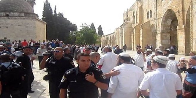 وأفادت وكالة وفا الفلسطينية للأنباء بأن مجموعات من المستوطنين اقتحمت المسجد الاقصى وقامت بجولات استفزازية داخله فيما عمدت قوات الاحتلال إلى تشديد إجراءاتها على أبواب المسجد الرئيسة واحتجزت بطاقات الفلسطينيين اثناء دخولهم للصلاة.