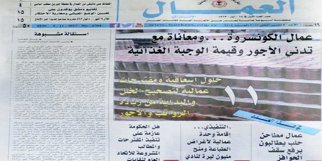 وكتب جمال القادري رئيس الاتحاد العام لنقابات العمال في افتتاحية العدد أن “الانتصار في مدينة دير الزور له دلالات كثيرة فهو يؤكد صلابة الإرادة السورية وتصميم شعبنا على تطهير التراب من الظلاميين والتكفيريين”.