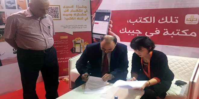 وقع اتحاد الناشرين السوريين اتفاقية تعاون مع شركة تلك الكتب الصينية للنشر الالكتروني تضمنت تفعيل التعاون بين الطرفين وفتح منصات الشركة للكتاب السوري في الصين وذلك على هامش مشاركة الاتحاد بمعرض الشارقة للكتاب.