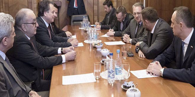 بحث الممثل الخاص للرئيس الروسي إلى الشرق الأوسط وبلدان أفريقيا نائب وزير الخارجية ميخائيل بوغدانوف مع وفد من مجلس الشعب في موسكو تطورات الأوضاع في سورية والمنطقة.