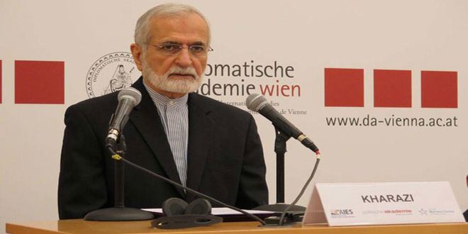 وقال خرازي في تصريح لوكالة الأنباء الإيرانية “إرنا” على هامش اجتماع الجمعية الأوروبية في الأكاديمية الدبلوماسية في فيينا إن “الدول التي أوجدت الإرهاب هي عنصر عدم استقرار في المنطقة وهي مع الأسف تحظى بالدعم الأمريكي نظراً لما تنفقه من أموال في شراء الأسلحة” منبها من تدخل النظام السعودي في الشؤون الداخلية للبنان ومحاولة إثارة أزمة فيه.