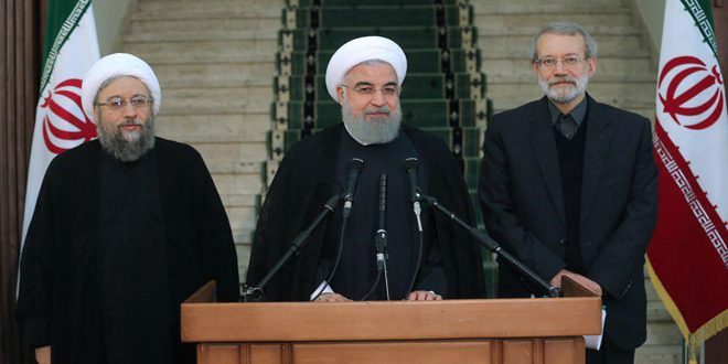 وأضاف روحاني في تصريح له عقب اجتماع رؤساء السلطات التنفيذية والتشريعية والقضائية الإيرانية اليوم: “من الطبيعي أن تغضب أميركا والصهاينة نظرا للانجازات التي تحققت ضد الارهاب وفشل مخططات التقسيم في المنطقة” لافتا إلى أن أوضاع المنطقة تؤكد أن الاعداء الذين فشلوا في تحقيق مآربهم يخططون لمؤامرات جديدة فيها.