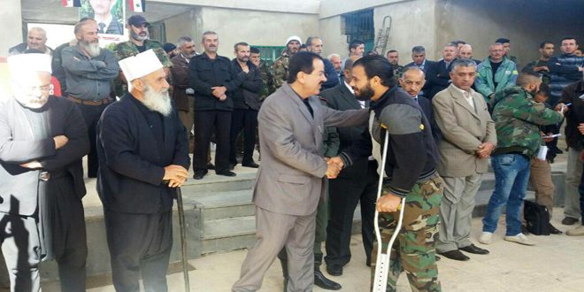 وقال المحافظ: “كما فعل أجدادنا الذين لم يساوموا على كرامة الوطن وحريته واستقلاله في معارك الشرف فإن رجال الجيش العربي السوري يسحقون أعداء الوطن الذين تكالبوا على سورية من كل حدب وصوب”.