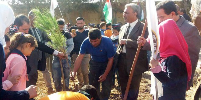 بمناسبة اليوم العالمي للبيئة نفذت مديرية البيئة بالتعاون مع فرع الطلائع ومديريات الزراعة والتربية وشبيبة الثورة في محافظة القنيطرة حملة تشجير تم خلالها زرع عدد من الغراس الحراجية في حديقة وحدة جبا الريفية وعرض فيلم وثائقي عن أهمية الحفاظ على البيئة والثروة الحراجية.