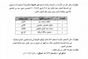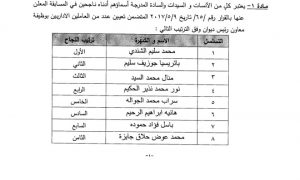 وكانت الوزارة أجرت المقابلات الشفهية للناجحين في المسابقة الكتابية يومي الجمعة والسبت الموافقين لـ13و14 من تشرين الاول الماضي بعد أن أصدرت في أيلول الماضي أسماء الناجحين بالامتحان الكتابي.