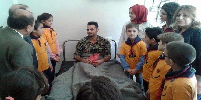 فيما عبر عدد من الأطفال الذين قدموا باقات الورود للجرحى عن تقديرهم للدور الوطني الرائد لأبطال الجيش العربي السوري في تحقيق مجد الوطن وعزته وانتصاره لتبقى سورية عزيزة.