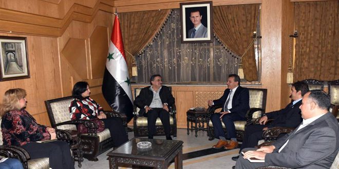 بحث محافظ حلب حسين دياب اليوم مع ممثل صندوق الأمم المتحدة للسكان ماسيمو ديانا واقع العمل الإغاثي والإنساني وسبل توسيع مجالات التعاون المشترك وتنفيذ المشاريع ذات الأثر الإيجابي على الأهالي في أنحاء المحافظة.